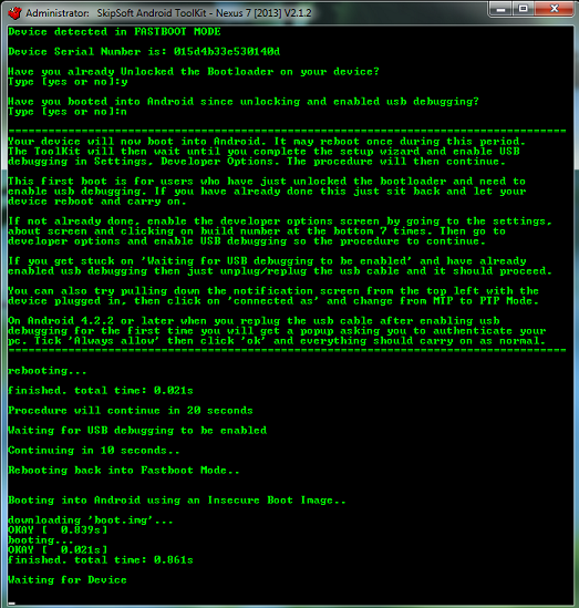 Fastboot módban feldugom a cuccot a gépre, majd 4.4.0 built-t kiválasztva akár rootolni akarok, akár custom recoveryt feltenni, mindenképp megakad egy "Booting into Android using an Insecure Boot Image.." szöveg után (downloading okay és booting... okay után) "Waiting for device" felirattal.Ötlet?