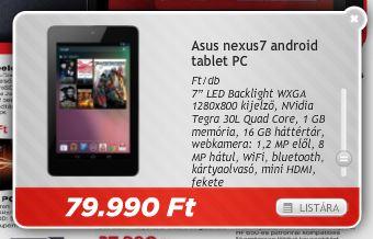 Nexus 7 8MP-es hátlapi kamerával, mini HDMI-vel é kártyaolvasóval 80e Ft-ért.