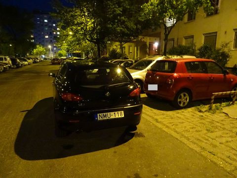 Kicsit kiegészítem, mert félreérthető voltam. Véletlenül sem minősíteni szerettem volna bárkinek a vezetési tudását, csak ebből a képből a piros és a fehér is elvileg kiállhatónak tűnik nekem. Ettől persze simán lehetnek akadályok még, amik nem látszódnak. Mellette szűken állnak stb.