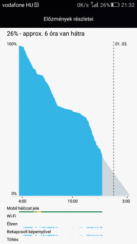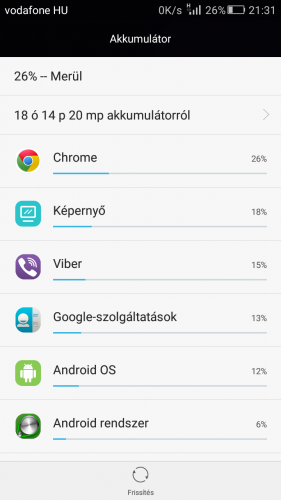 Van egy Honor 6 os készülékem aminek az akksija mondhatom tökéletesen jól bírta..viszont egyik napról a másikra eléggé elkezdett merülni...8 óra alatt,kikapcsolt wifi, és elvileg mindent leállítok az akksi 20 százalékot csökken...ami máskor max 2 százalék volt..Azóta van ez a dolog amikor feltelepítettem az un Rayman játékot, amit azóta le is töröltem már.....Várom javaslatokat mi lehet a gond...köszi -