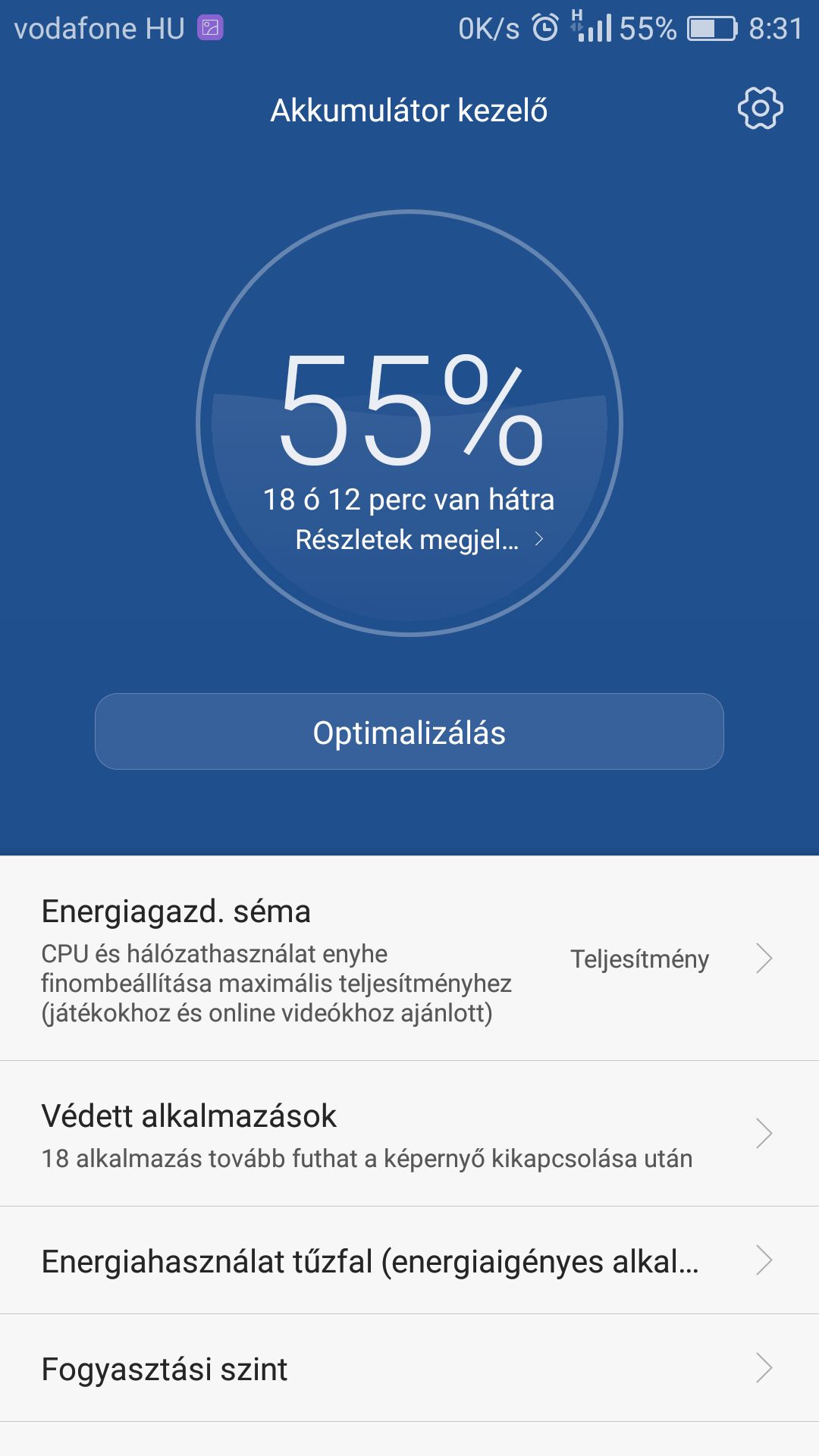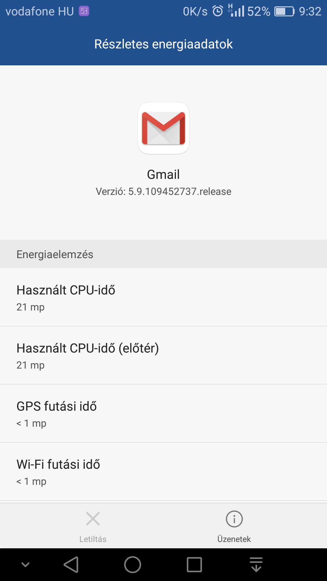 Beállítások/Alkalmazások/Email/Akkumulátor?