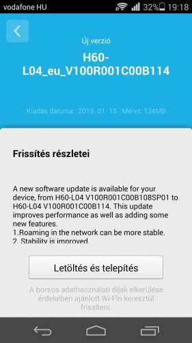 Jött 1 frissítés: H60-L04_eu_V100R001C00B114 -