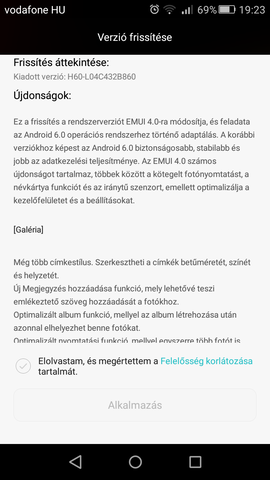 Jelenleg H60-L04-es Honoromon a B527-es Lolli van. Az lenne a kérdésem, hogy érdemes e updatelni a B820-as MM-re? Páran azt mondják, hogy MM-nél melegszik a telefon jobban és gyorsabban merül az aksi. Nem tudom, hogy ezek igazak és az appok sd-re áthelyezésére van e lehetőség?Előre is köszönöm a válaszaitokat.
