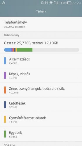 Megnezheted a futas idejet is de az sem mervado. Megtalaltad a file kezelot? Ott bo gessz es nezd meg mik vannak a telon. Mivel 32gigas gondolom kinabol hozattad es lehet h ott raktak mar tele.
