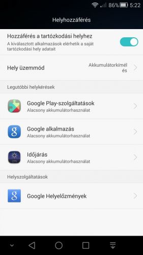 A gyári időjárás appnak van ugyan hozzáférési joga a GPS adatok lekéréséhez, de ha a helyhozzáférésben a hely üzemmódnál az akkumulátorkímélést állítod be, akkor csak a Wi-Fi és a mobilhálózatok adataihoz fog hozzáférni, GPS-hez nem (ahhoz a nagy pontosságot kell beállítani).