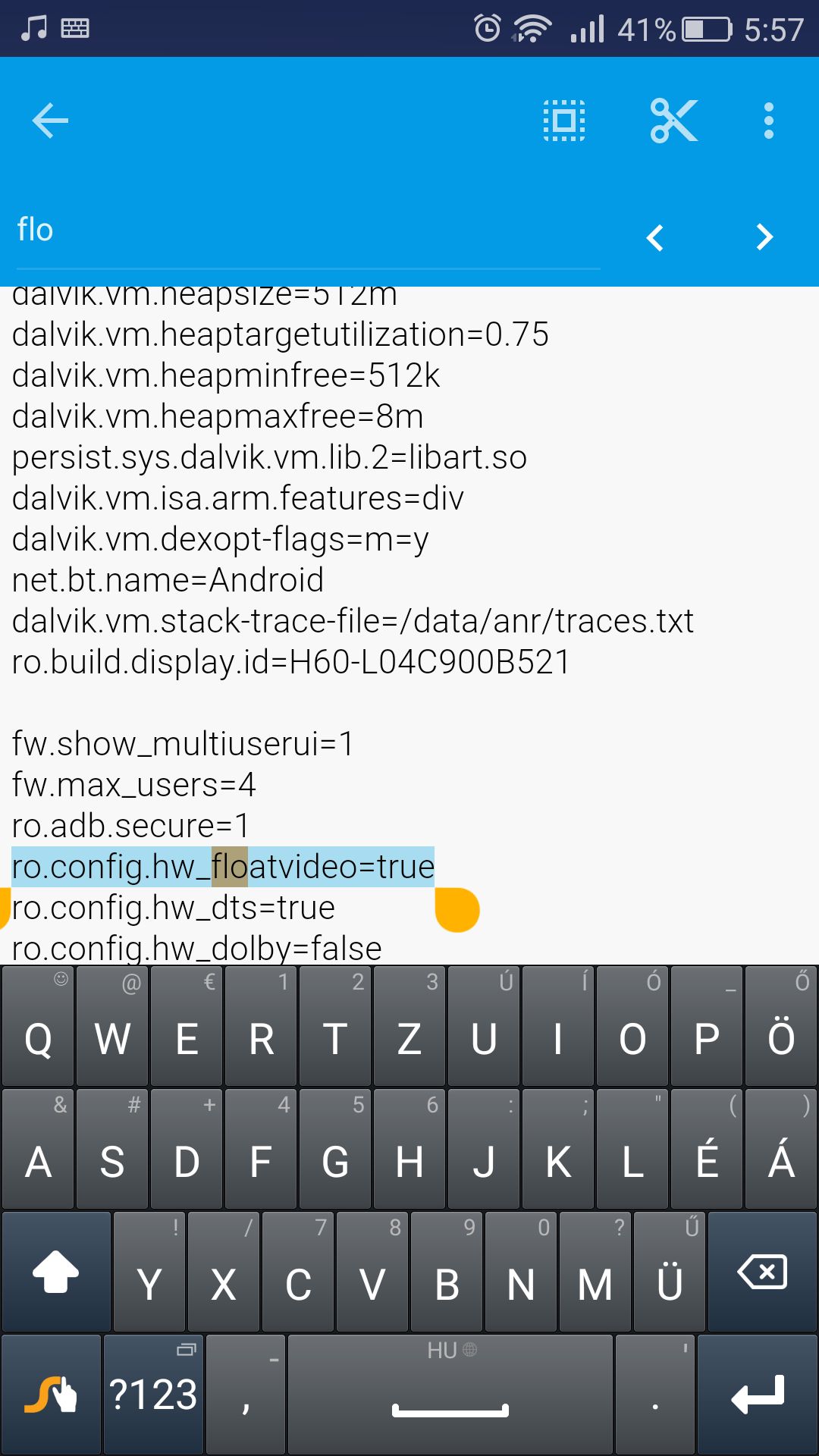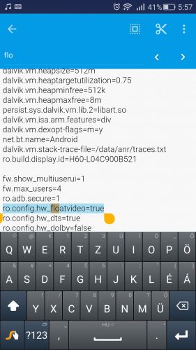 A /system/build.prop-ot kell szerkeszteni, ott is a két sort