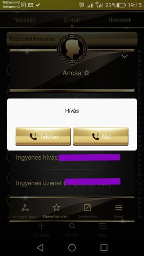Itt úgy működik, hogy kiválasztod a telefonkönyvből a kontaktot, rányomsz a számra és utána választhatod ki, hogy melyik kártyával hívod azt. Itt már többen is írtak alternatív tárcsázó appot. Ez már az egyéni téma miatt ilyen színű és mintájú. Kinek a pap, kinek a papné