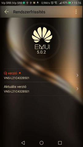 Jelenleg EMUI 4.2.1, android 6.0 fut rajta. A frissítés menünél többszöri próbálkozás ellenére sem talál újabb verziót.