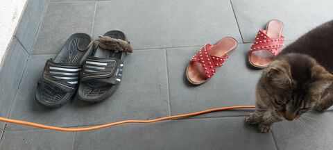 Ha kaját kapunk tőle, azt mindig a teraszra, a kerti papucsomba teszi, majd büszkén várja alázatos köszönetemet!