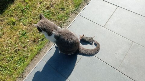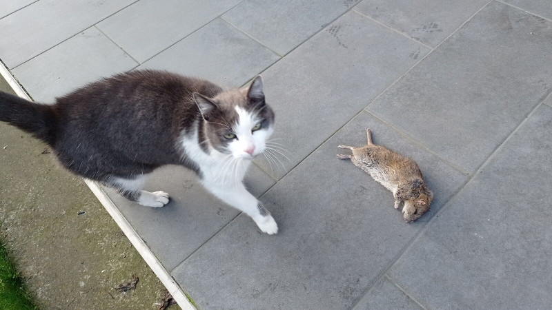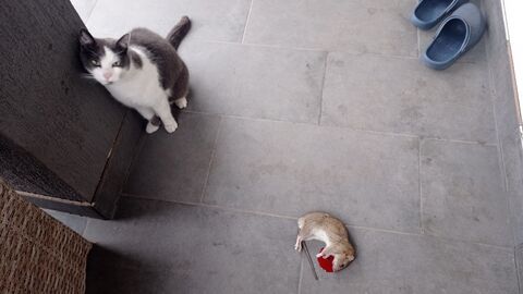), egy verebet, egy denevért. A röpképtelen jószágok közül két vakond és egy komoly egér az eddigi menü.