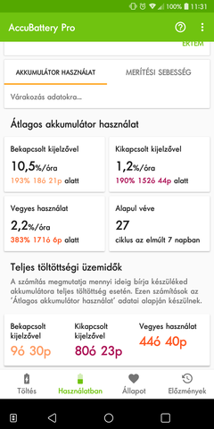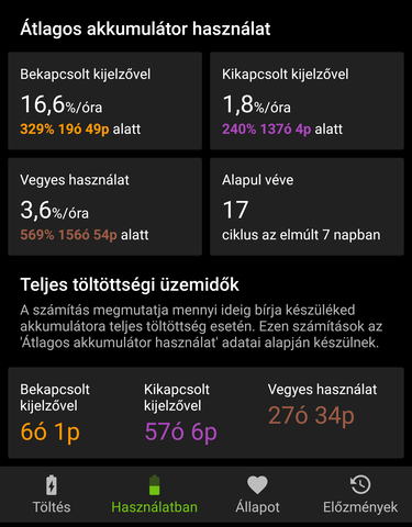 folyamatos adat kapcsolattal 10ora 10p bár 7ora képernyő időnél még 41% volt az akksiban, ekkor max fényerő