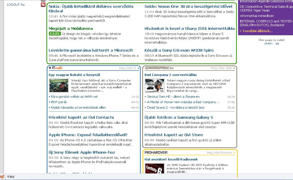 Én először is gratulálok minden szerkesztőnek h összehozták azt az oldalt, biztos nem 3 perc volt. Személy szerint nekem nem tetszik, de RSS-ből illetve iGoogle-el minden f@sza szerk : Twitteren is követem ugyhogy azon is normális