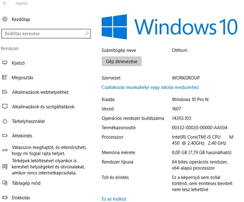 -közben frissült a Lumia és a laptopon lévő windows, mindkettőn jelenleg a Windows 10 Pro N,