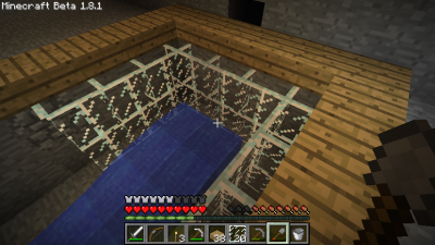A lényeg az, hogy a földalatti spawnhelyről jönnek föl a vizen keresztül a mobok, majd szétválasztom a pókokat a többitől. A pókok fulladnak, a többit lávával ölöm.