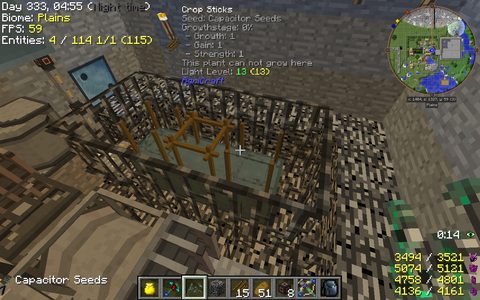 Raktam capacitor bank alá bedrockot, megvan a 100 rf/tick, megvan a 13mas fényerősség(glowstone van felette), nem éri napfény, körbevettem dark iron barral.