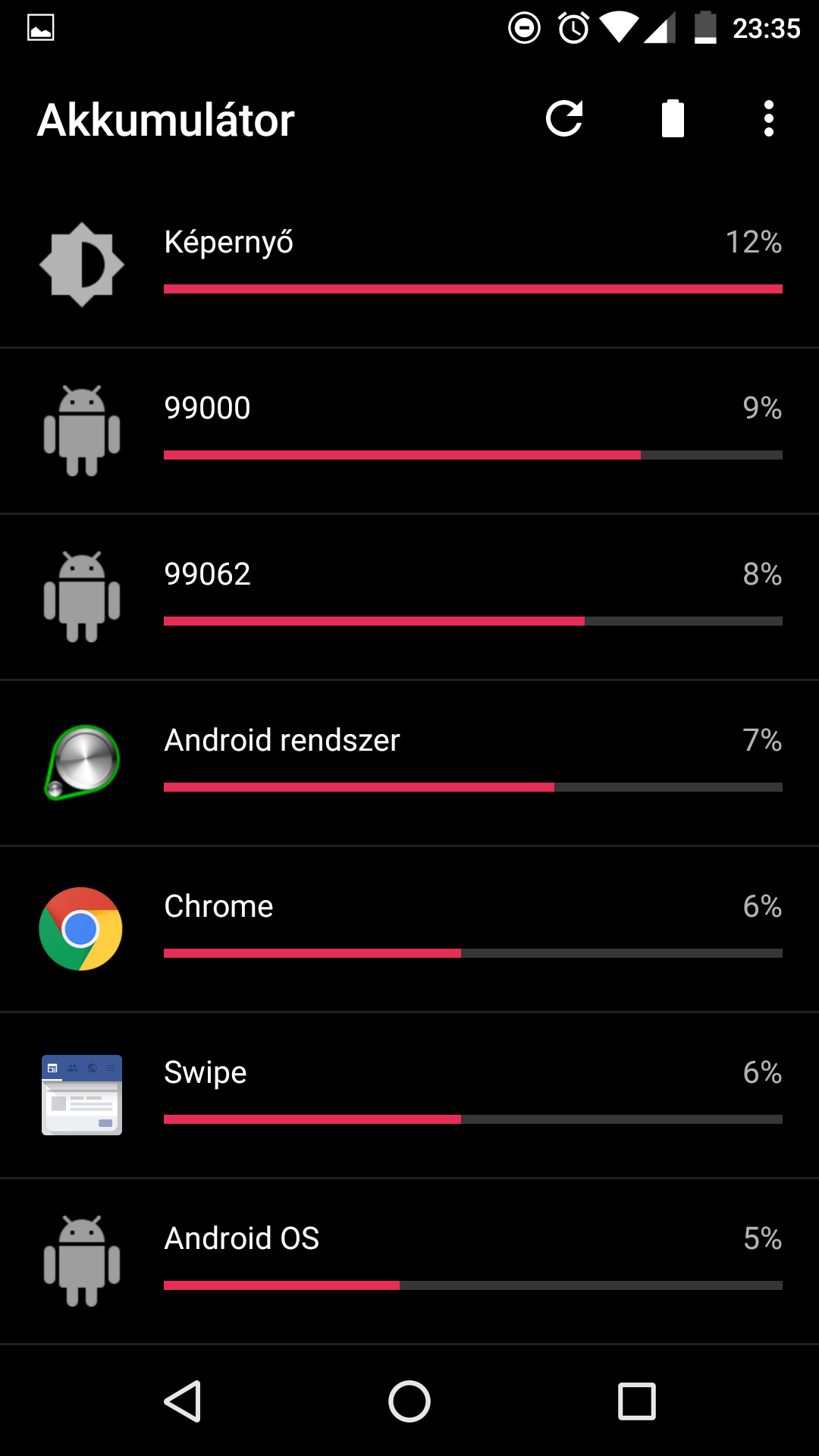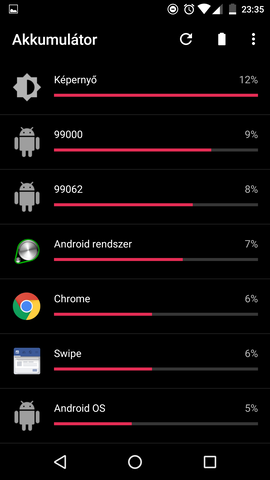 Az S6 (Edge) meg merül, mint a kő, mert beragad valami android process. Totál random módon. Volt olyan, hogy esküvőre kellett mennem fotózni, levettem a töltőről, beültem az autóba, majd 20 perc múlva azt vettem észre, hogy meleg a telefon... 74%-on volt már akkor. Na, egy reboot után csak imádkoztam, hogy nap végéig bírja ki.