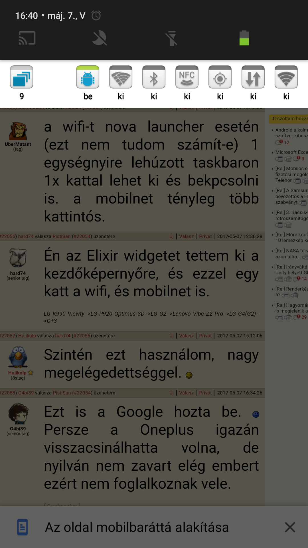 a wifi és mobilnet ki-be kapcsolást nem értem, hogy miért kell plusszban nyomkodni még, ami a 6-os alatt egy gombnyomás volt