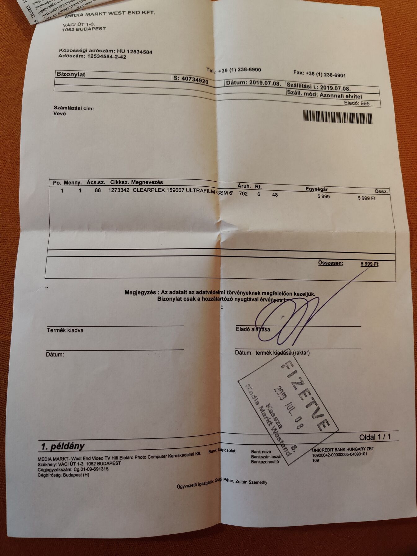 Szegedi MediaMarkt-ban szépen felrakták a ClearPlex fóliát, 7990 Ft volt, most várom, hogy megszáradjon