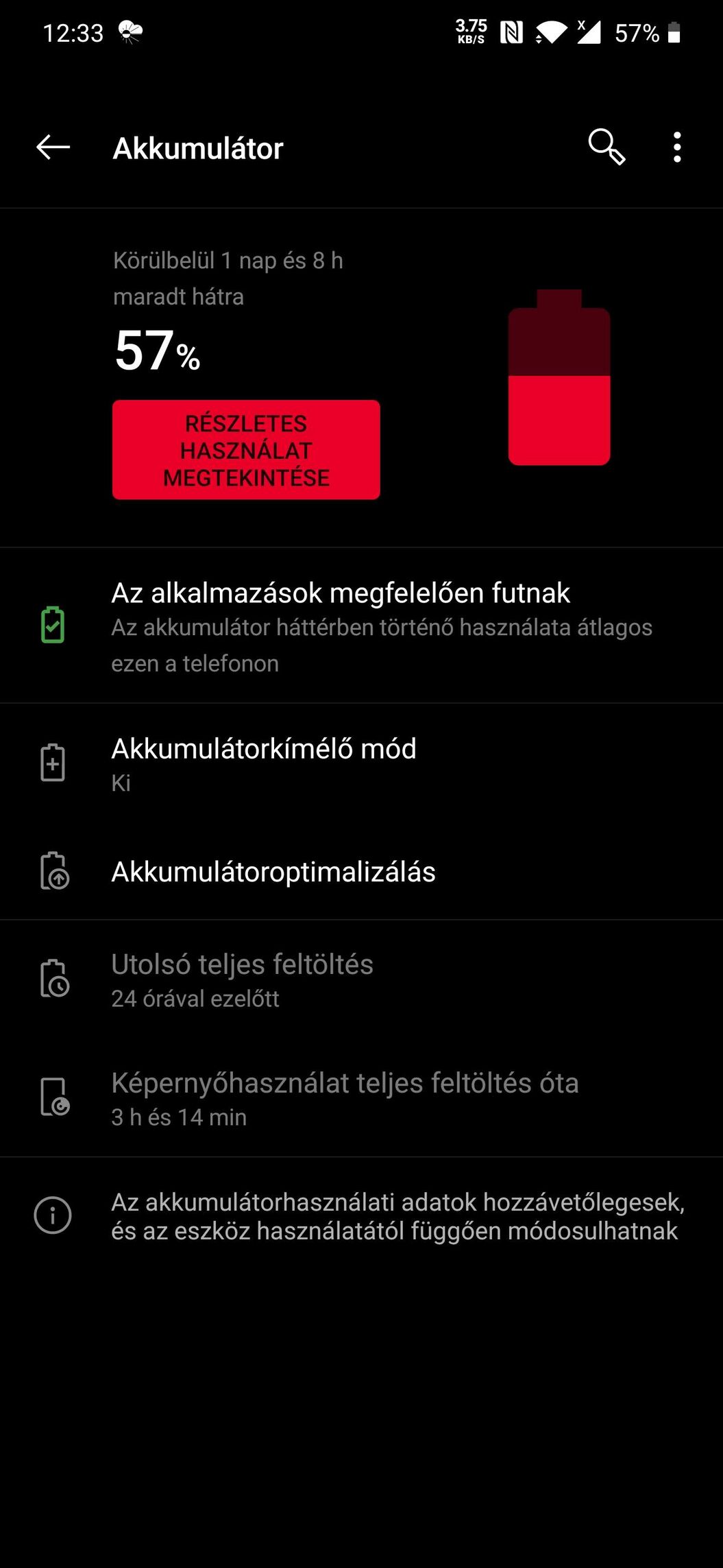 mióta kikapcsoltam a felemelésre történő kijelzőbekapcsolást,azóta sokat javult az akkufogyasztás.feltételezem,hogy ahogy a nadrág oldalzsebében ide-oda lóbálózott,mindig bekapcsolt a kijelző és ezzel merítette rendesen az akkut.