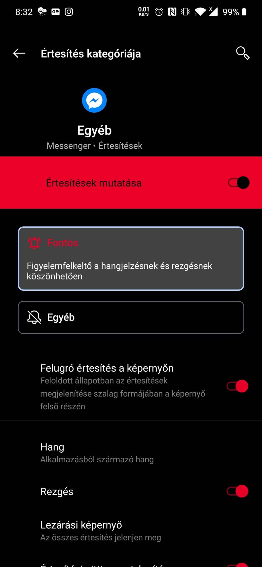 Mindegyik kategória tartalmazza, neked a chat/üzenetek és hívások-ban kell átállítani.