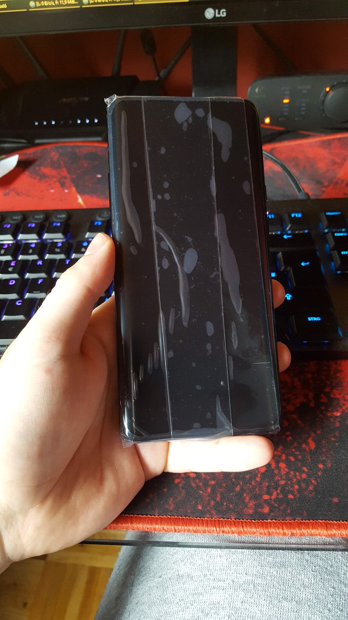 Sima fólia volt rajta, de mivel cserélték a kijelzőt, így nem tudom mi lett a sorsa