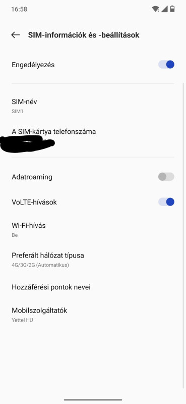Gondolom szolgáltatói oldalon rendben van, engedélyezve van. Lehet keverem a VoWifivel... régen volt már mikor ezzel foglalkoztam.