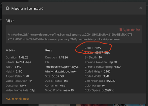 Ha a Kodi saját natív lejátszóját használom minden tökéletes, tehát 4K HDR kép van, DTS meg Dolby hang (minden formátum) van. Az erősítő egyértelműen kiírja a hangformátumot, a TV egyértelműen jelzi hogy 4K HDR kép van. Tehát a rendszer és elemei mind tudják amit kell. Ezen a módon a filmejátszás tökletesen működik. (nyilván ennek eddig semmi köze a Plexhez