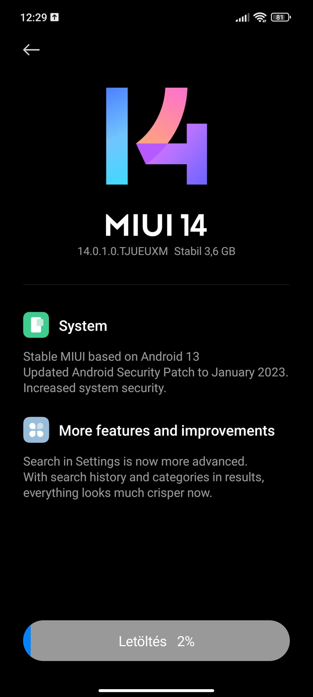 Ezt írta: "Miui Global 14.0.1.0 (TJUMIXM) --- Android 13 TKQ1.221013.002