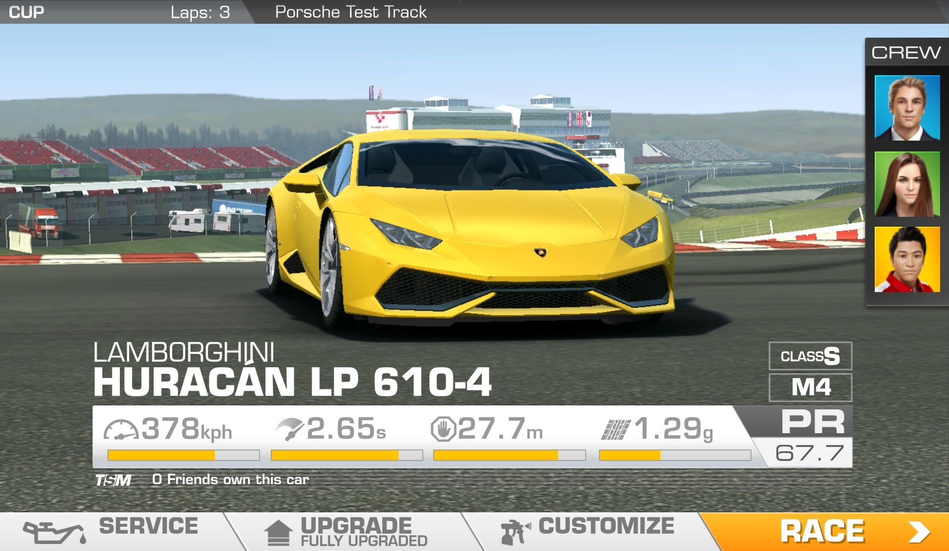 A huracan első körös fejlesztése rs (kb.0.5M rs), a másodikból csak 2 rs, a többi gold, a harmadik kör a motornál és a guminál goldos