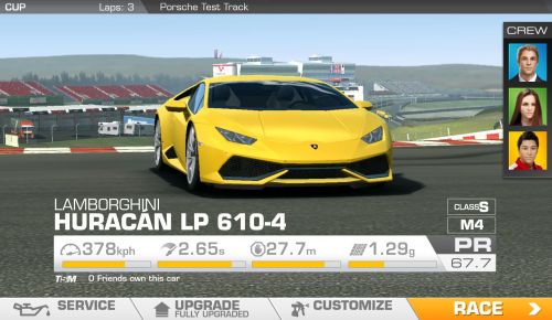 A második nap sem vészes (kb.20 perc), de az utolsó verseny a gallardo-val van, így a 4. futam végén be kell dobni szervizbe a huracan-t. A 3. futam endurance, >=9.4km-et kell menni, választahtó kocsival. Én a gallardo-t választotam.