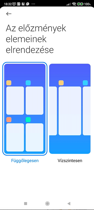 1) az előzmények/futó alkalmazások esetén nem találok lehetőséget a függőleges és vízszintes nézet közti váltásra, mint a MIUI-nál