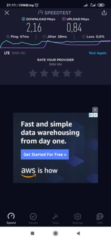Ennyire nem értek hozzá, de ha nem támogat bizonyos frekvenciákat (B20), az talán okozhat ilyet. Meg az is kérdés, hogy a másnál normálisan működik az ugyanakkor, ugyanott történő méréssel derült ki? Csak mert a mobilnet durva szélsőséges sebességeket tud produkálni, akár ugyanazon a helyen is, de eltérő időben.
