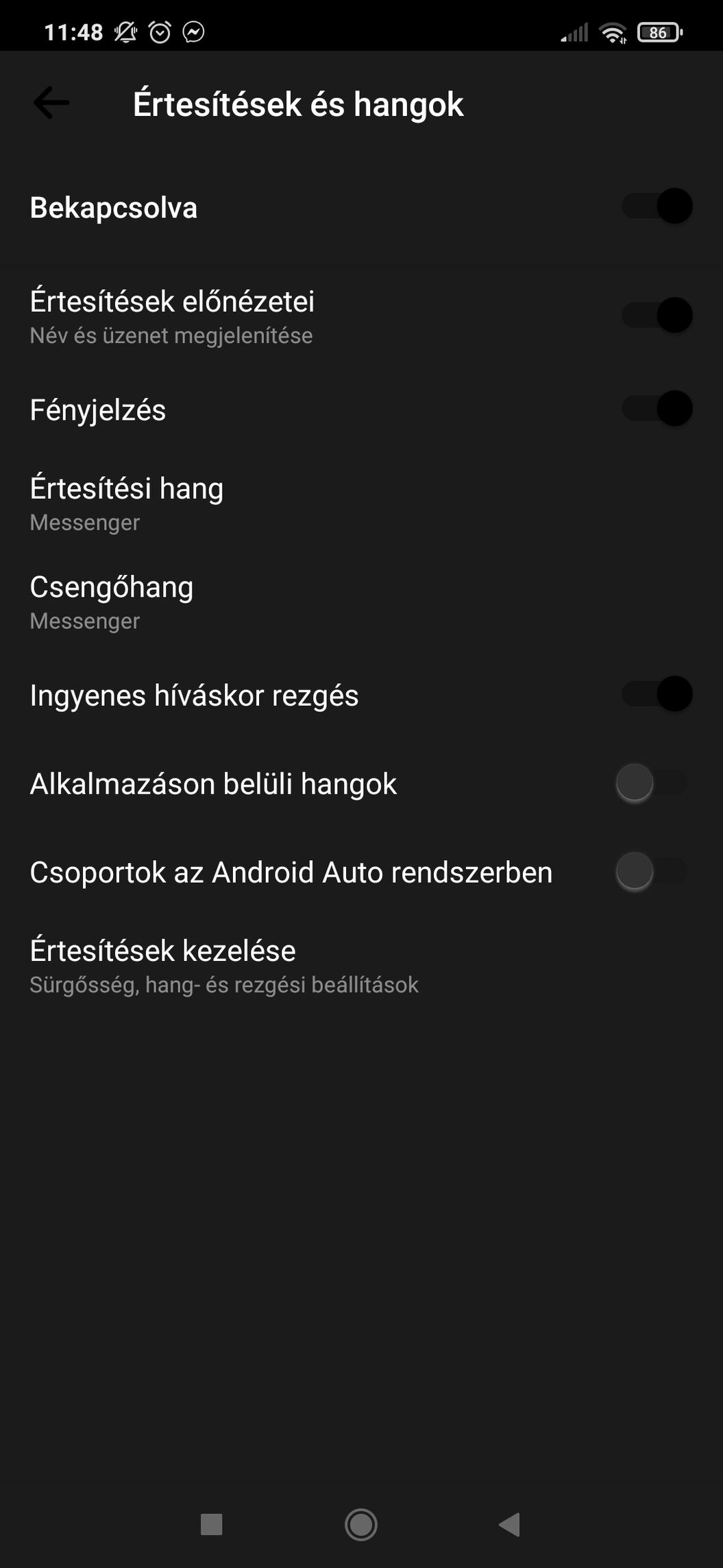 Na a miui 12-ben van egy kis cselesség egy két dolog nekem is meglepetés volt.Szóval menj be a megjelenítés menüpontba aztán sötét mód utána egyéni alkalmazások és a messengernél kapcsold ki a kék színű kapcsolót,hogy szürke legyen mert a miui 12 duplán sötétíti az appot amiben már van sötét mód.Ami ott app van meg tudod határozni,hogy a miui még sötétítsen rajta vagy elég a gyárilag beépített ami éppen az appokban van.