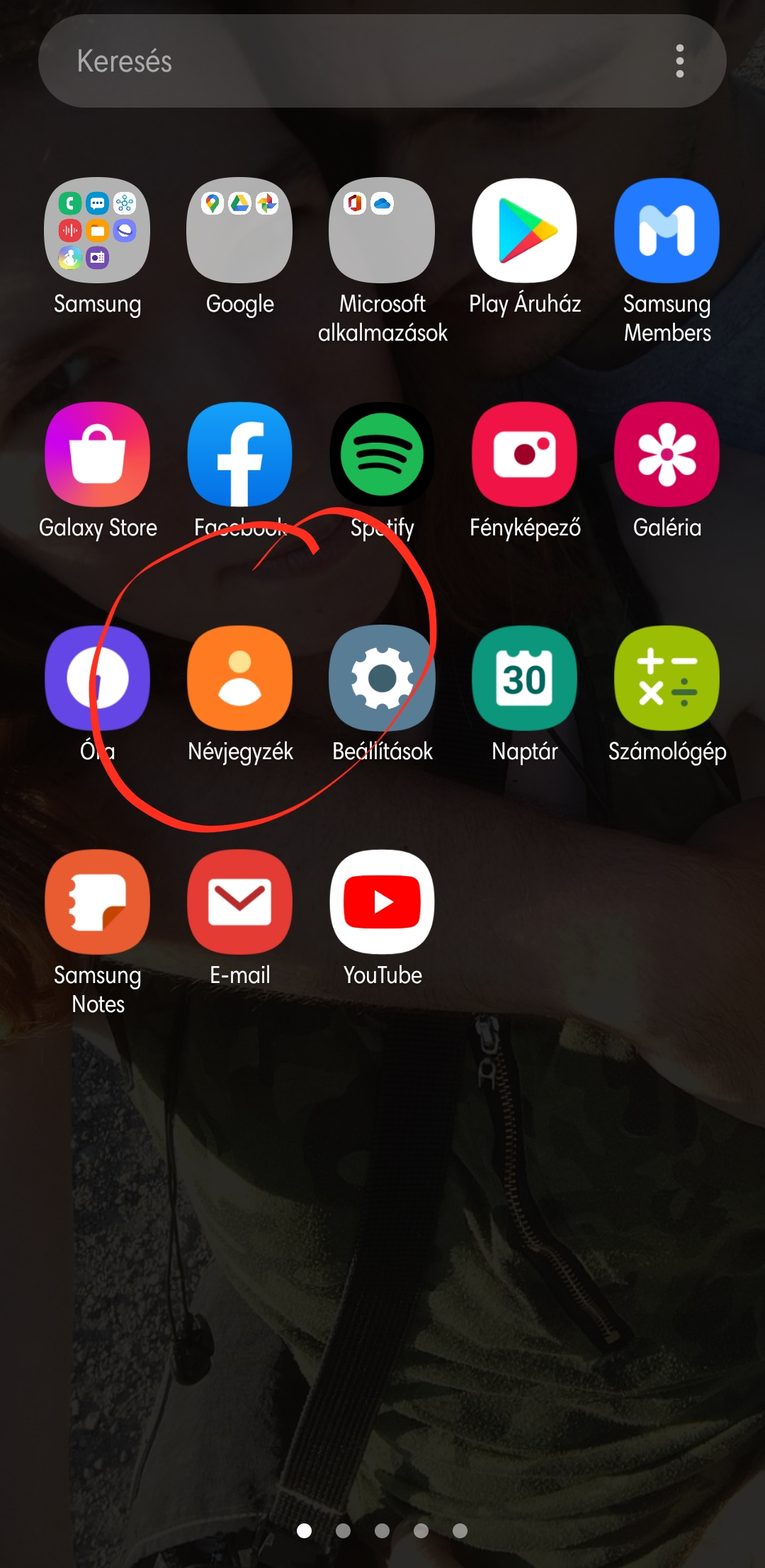 Ne a telefon appban keresd hanem a névjegyzékben.