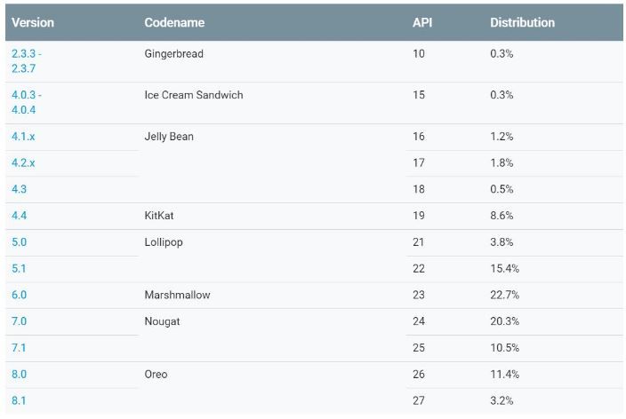 Ez a standby idő a Pie-nél azért erősen függ a telefon SoC-tól és az optimalizált gyártói felülettől. Feltéve, ha optimalizált, mert ha sz@r akkor bármit ráhúzhatsz, akkor is sz@r marad. Az A5 sorozat, pedig qrva jól optimalizálva van. Itt pedig egy friss kép az android verziók elterjedtségéről. Egyszerűen szánalmas...