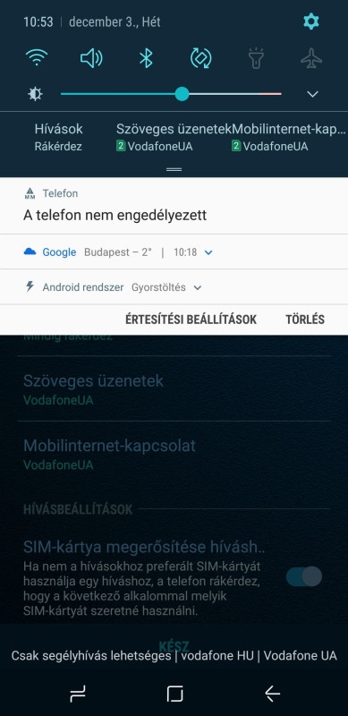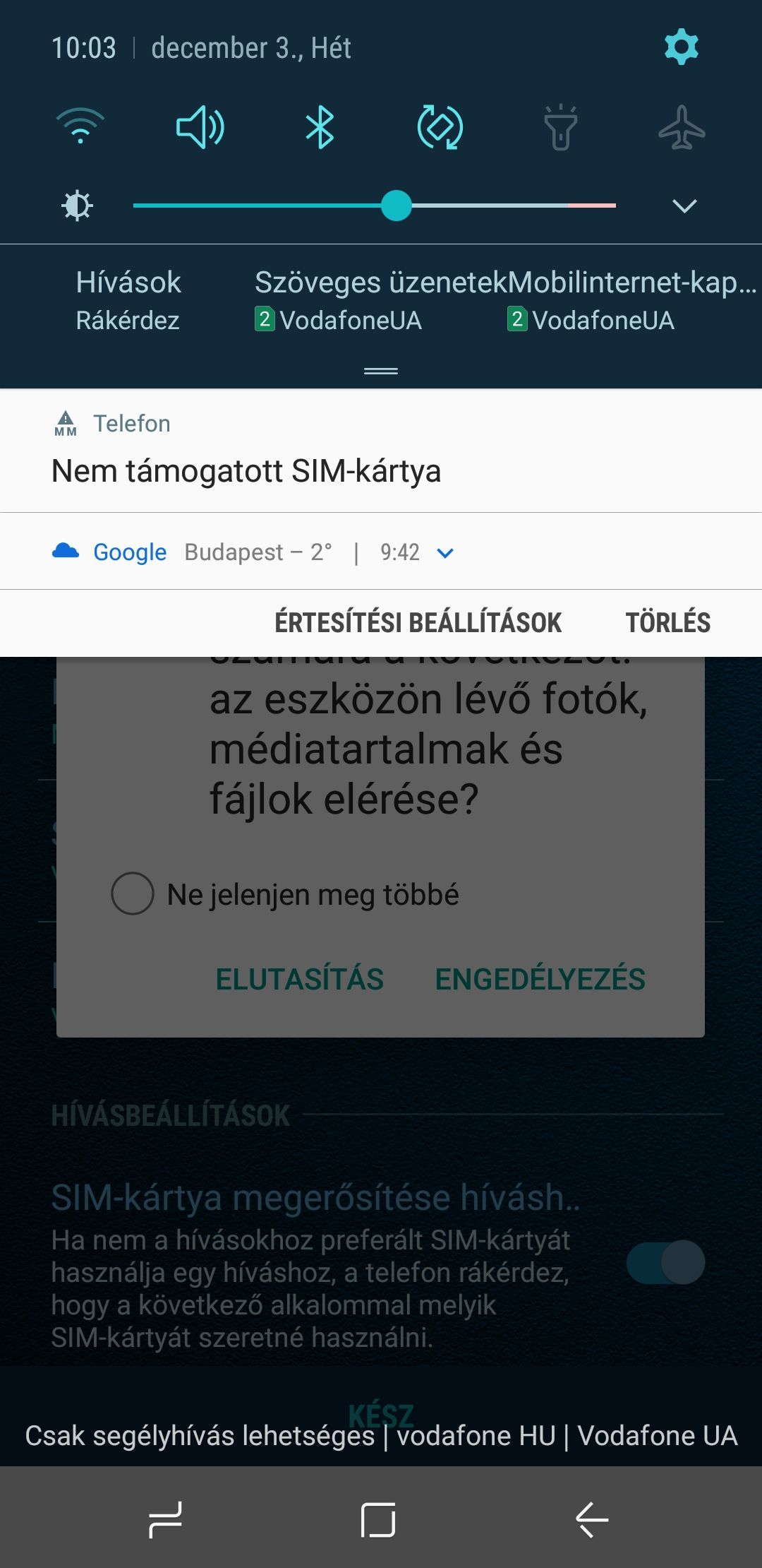 A SIM1 slot, amiben a telekomos kártyák nem működnek, ott jelenleg egy külföldi Vodás kártya van vodás hálózaton. Telenorost jelenleg nem tudok bele tenni, de pénteken, ami után ledobott a T-s hálózatról tettem bele, kipróbáltam és tökéletesen működött, tudtam hívást indítani és fogadni is, ezért is gondoltam azt, hogy tiltva lett a Telekom felől.