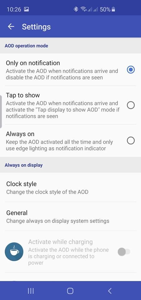 Én is használom az aodNotify-t és én is a "tap to show" opcióval használom. Rájöttem, hogy akkor állítódik el az aodnotify, ha be van kapcsolva valamilyen gyári akkukímélő mód, ami ilyenkor átveszi az irányítást az aod felett. És ilyenkor kézzel visszakapcsolni az aodnotify-t.
