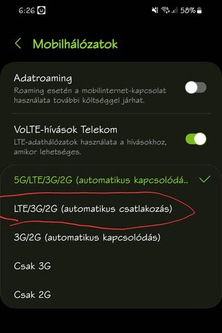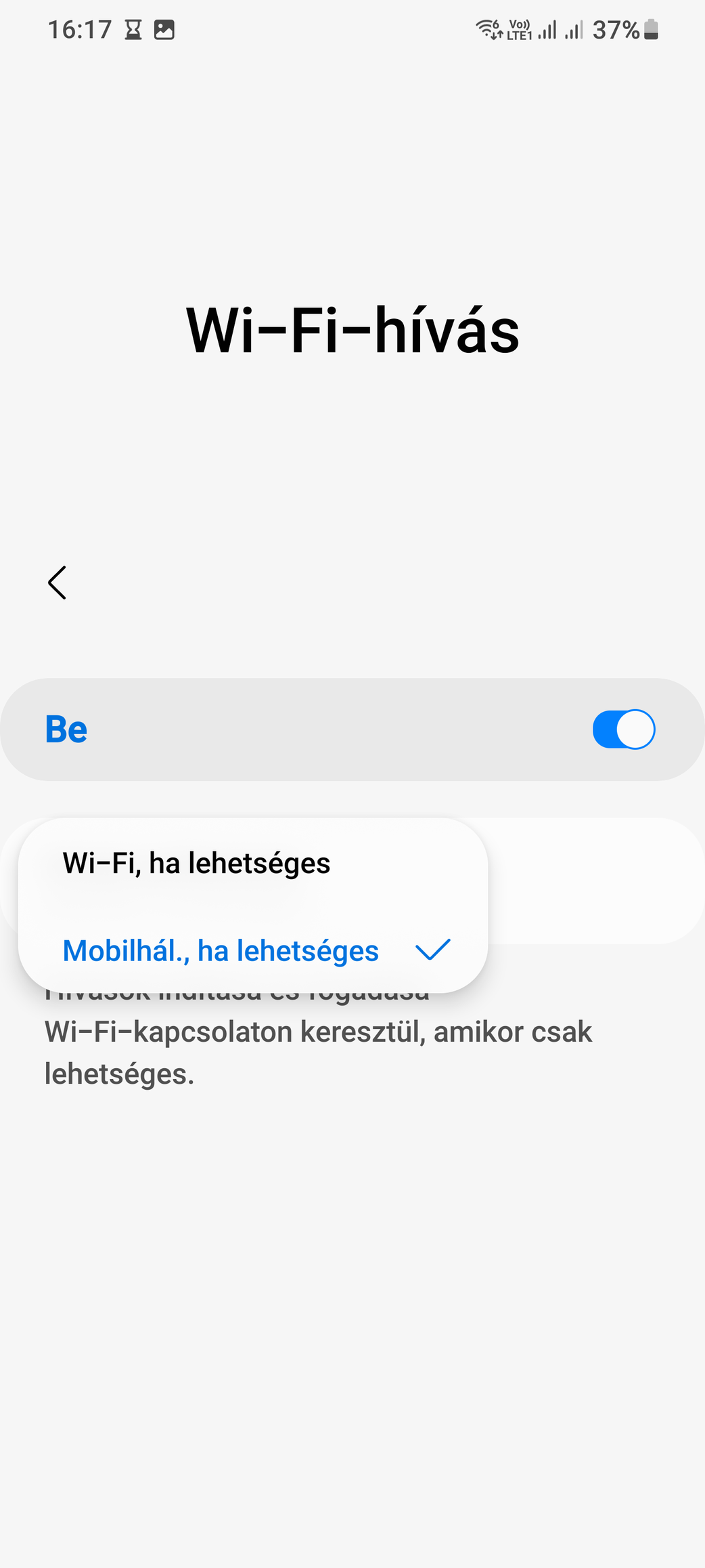 Samsung esetében Voda, ex digi, Yettel el van, telekommal nincs VoLTE ikon.