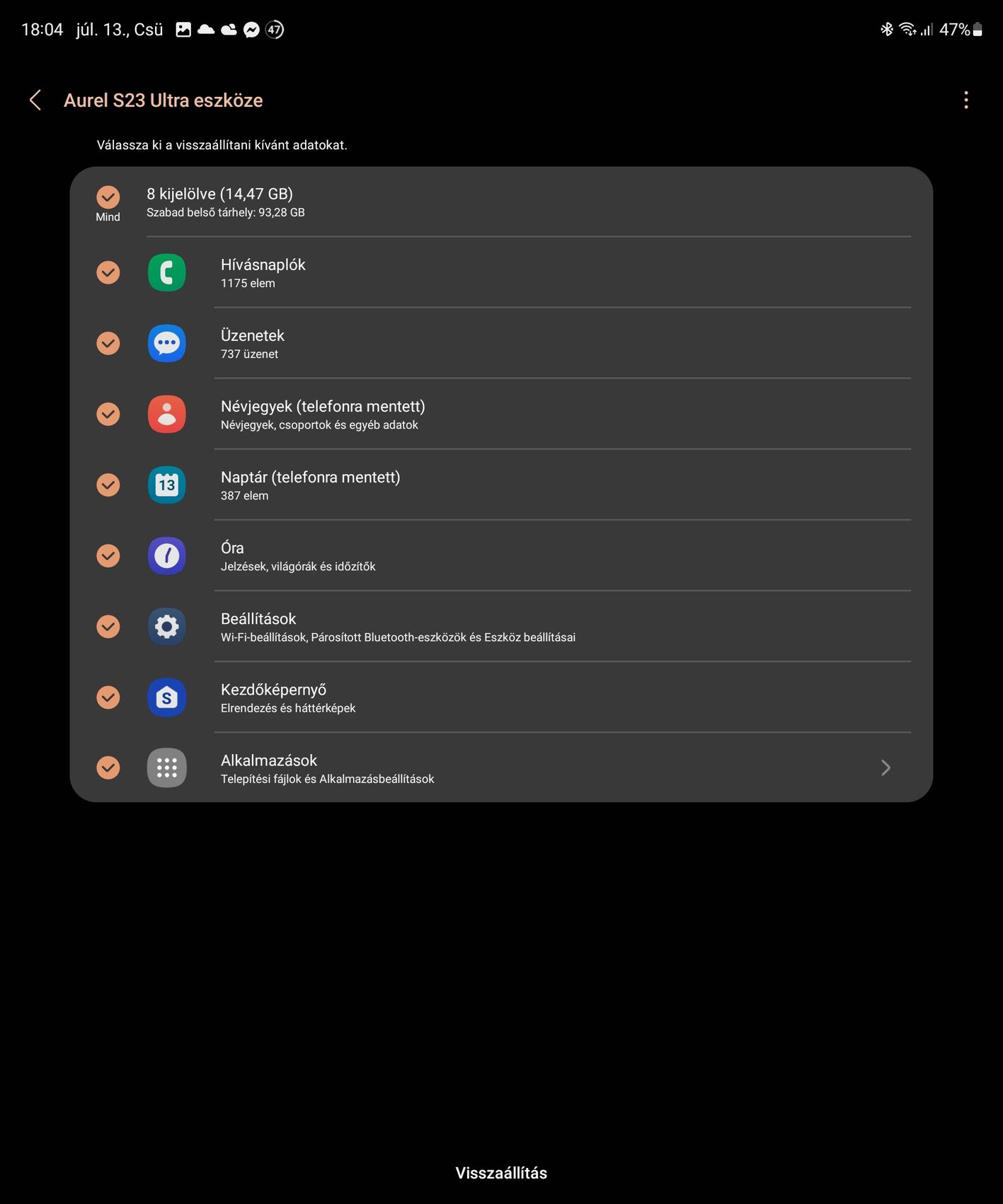 Csináltam egy biztonsági mentést SD kártyára SmartSwitchel aztán gyári beállítás vissza.
