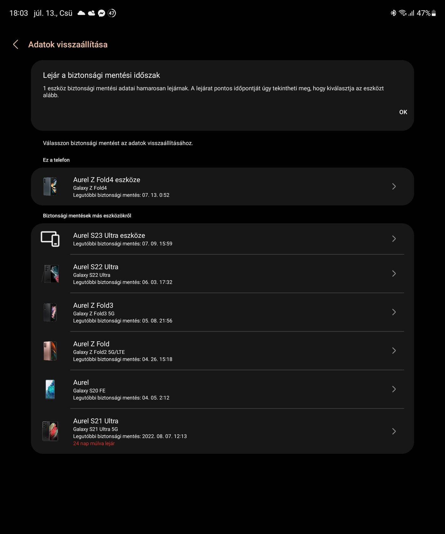 A képeket, videókat és fájlokat persze érdmes usb-n a gépre menteni, vagy ha van másik nem használt samsung eszköz, akkor akár a smartswitch is megoldás lehet addig.