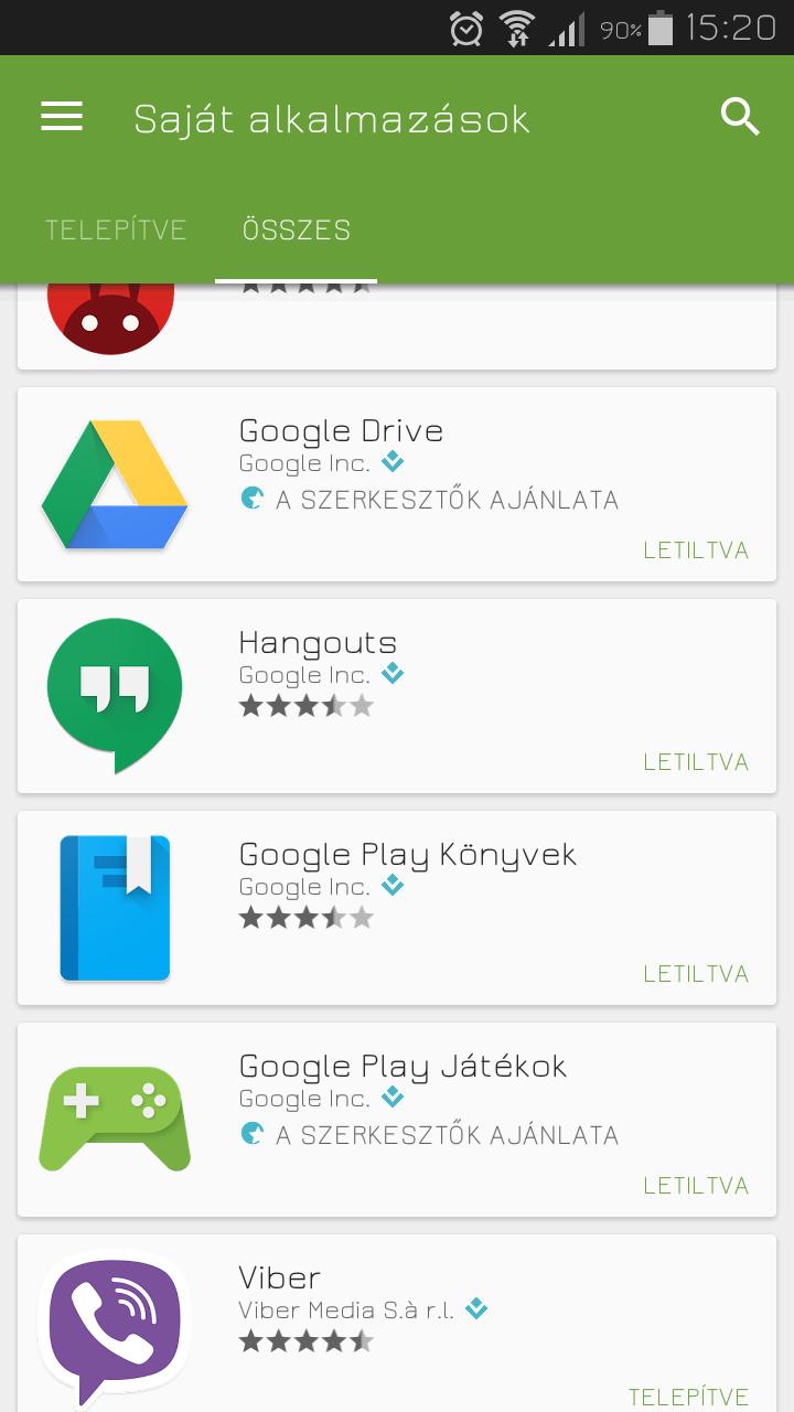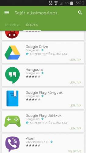 A play/ saját alkalmazások/összesben ott kell, hogy legyen csak mellette ott van, hogy letiltva.