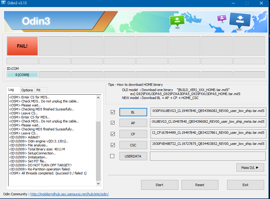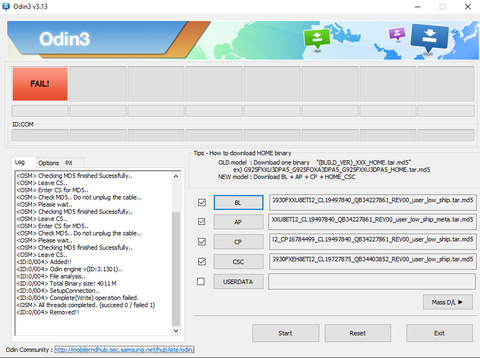 Végül Odinnal sem sikerül ugyanazt a romot visszarakni, a param.bin-nél megáll és a végén failel...