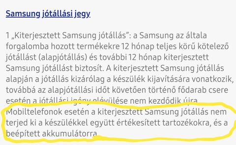 Ha van rá törvény, ami az ellenkezőjét állítja, akkor a Samsung jótállásának ezen része semmisnek tekinthető és a jogban meghatározottak az érvényesek. Ha csak nem jogalkotó a Samsung, ez nem is lesz máshogy. A Microsoft is próbálkozott a licenceit illetően, de nem jött össze.
