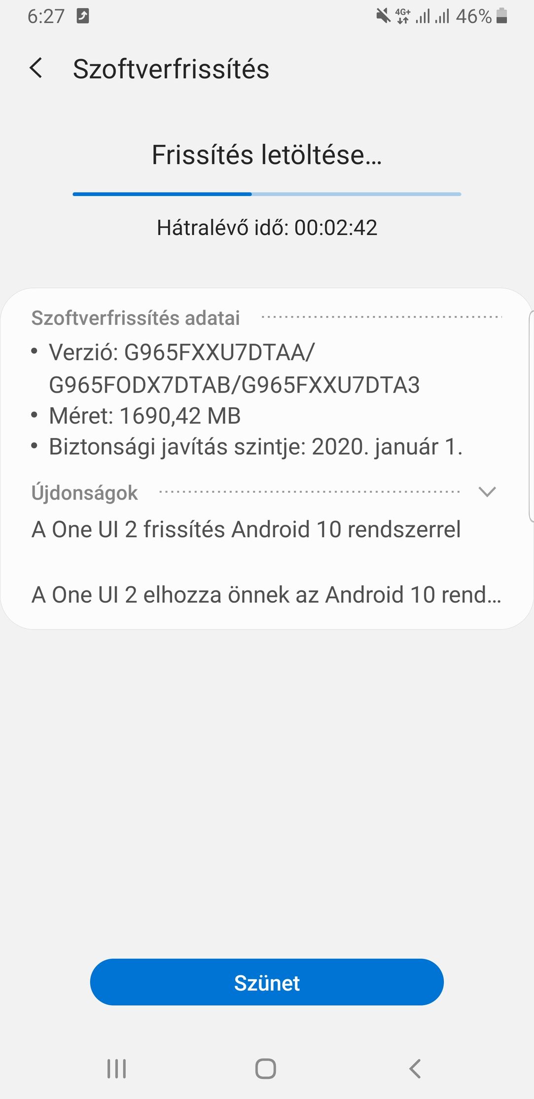 Dettó, nekem még a szeptemberi frissítés van fent a telefonon, minden rendben megy, nem is akarok variálni, most lesz 2 éves a telefon, remélem még legalább egy ennyit kibír.