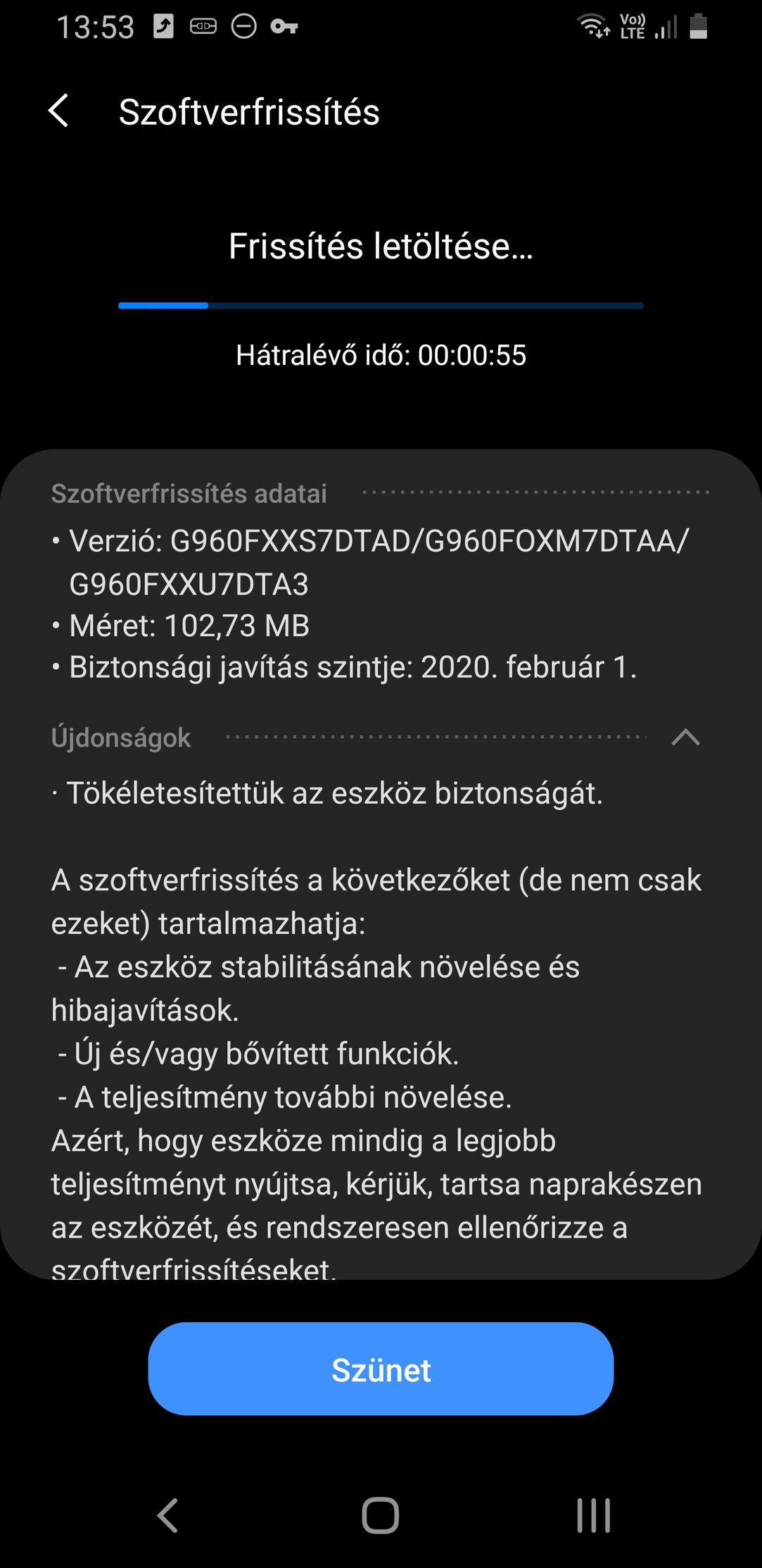 Időjárás app megjavult végre, viszont a Telenor és Vodafone VoLTE nem megy ugyan úgy a TMH szoftverrel.