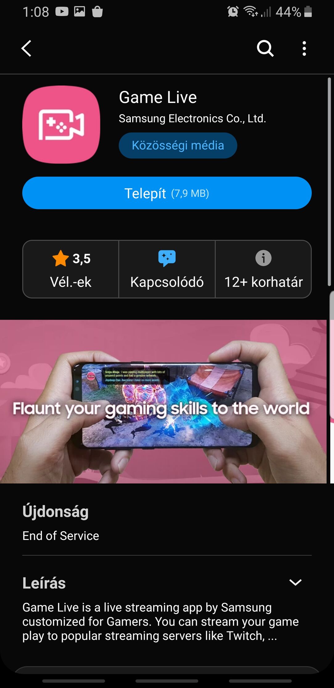 Sajnos nem kapta meg "hivatalosan". Viszont van apk, amit ha letöltesz, működik vele, hibamentesen. A 2.4.41.4-es verzió nálam hibamentesen fut. Elérni a beállítások/Speciális funkciók almenüben lehet. Vigyáz, ha ennél újabbat teszel fel, az nem fog működni. Nálam a februári verzió lefagy.