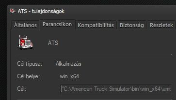 A cél mezőben tudsz beállítani paramétereket, elérési útat átírva a tiédre ez álljon benne nálad:"C:\American Truck Simulator\bin\win_x64\amtrucks.exe" -nointro -unlimitedlog -rdevice dx11 -mm_pool_size 2048 -mm_max_resource_size 100 -mm_max_tmp_buffers_size 4096