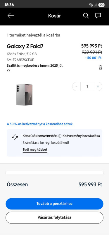 Samsung webshopból kb. mennyi idő alatt érkezik meg a Fold 7? Kiszállítanak júli 25 előtt is már?