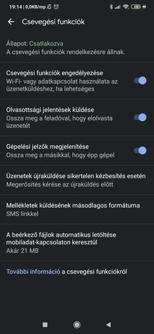 átállítottam a Messages megjelenítést sötétre és azóta MMS van nekem is, de visszaraktam világosra és sajna MMS maradt...bogár?Megvan, a csevegés funkciót engedélyezni kell, és akkor SMS lesz belőle