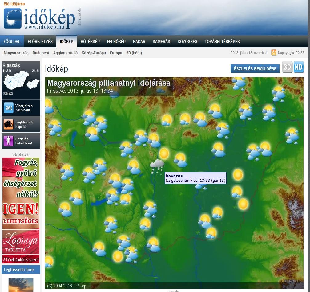 Zalaegerszeg:felhős, szélcsend, 22°C. Hol a hidegfront?
